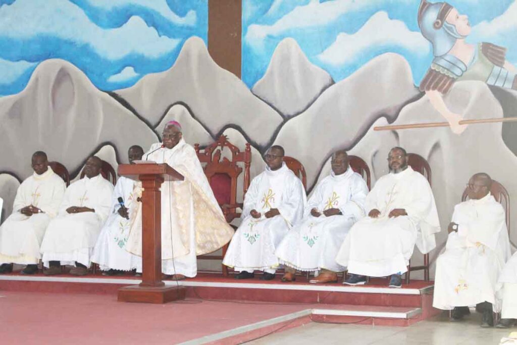 La paroisse Saint Joseph de Gbodjè a clôturé le dimanche 5 octobre 2025 le jubilé de ses noces de cristal par une messe présidée par Mgr Antoine Ganyé, Archevêque émérite de Cotonou. Il avait à ses côtés une quinzaine de prêtres dont le Père-curé Hermann Hachémè qui a délivré l’allocution de bienvenue. Vers la fin de la messe, Thibaut Akodo, vice-président du Conseil pastoral paroissial, a parlé des fruits visibles de l’évangélisation. « Monseigneur et cher Père, les tiges que vous avez plantées sont restées vertes. Nous sommes convaincus que la moisson sera, par la grâce de Dieu, encore plus abondante », déclare-t-il dans son mot de remerciement.
