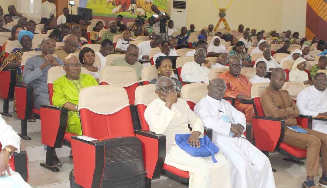 L’amphithéâtre Mgr Isidore de Souza de l’Institut pontifical Jean-Paul II à Cotonou a abrité le vendredi 12 septembre 2025 la matinée de réflexion missionnaire et scientifique organisée par l’Archidiocèse de Cotonou dans le cadre des festivités de ses 70 ans de création. Placés sous le thème : « La mission d’évangélisation dans l’Archidiocèse de Cotonou, 70 ans après : héritage, bilan et perspectives d’avenir », les travaux se sont déroulés autour de cinq axes : historique, théologique, éthique, pastoral et éducatif. Les assises ont été introduites par deux discours en présence d’une foule de fidèles et d’une délégation de laïcs venue de Porto-Novo.