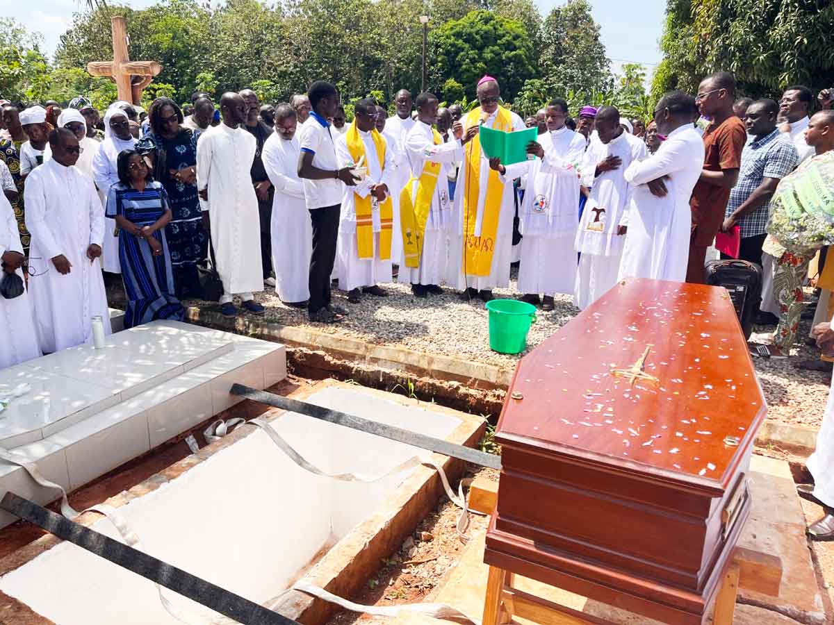 Dans son homélie, Mgr Roger Houngbédji a invité l’assemblée à imiter la simplicité de vie du défunt. Ensuite, il a insisté sur la radicalité du don de soi à Dieu en s’appuyant sur le testament du feu Père lu à l’entame de la messe. Celui-ci écrivait en substance : « Depuis le jour de mon ordination, j’appartiens d’une manière spéciale à l’Eglise, donc ma vie et ma mort lui appartiennent ». Dans son testament, le Père Assouma a souhaité que ses obsèques soient une fête.